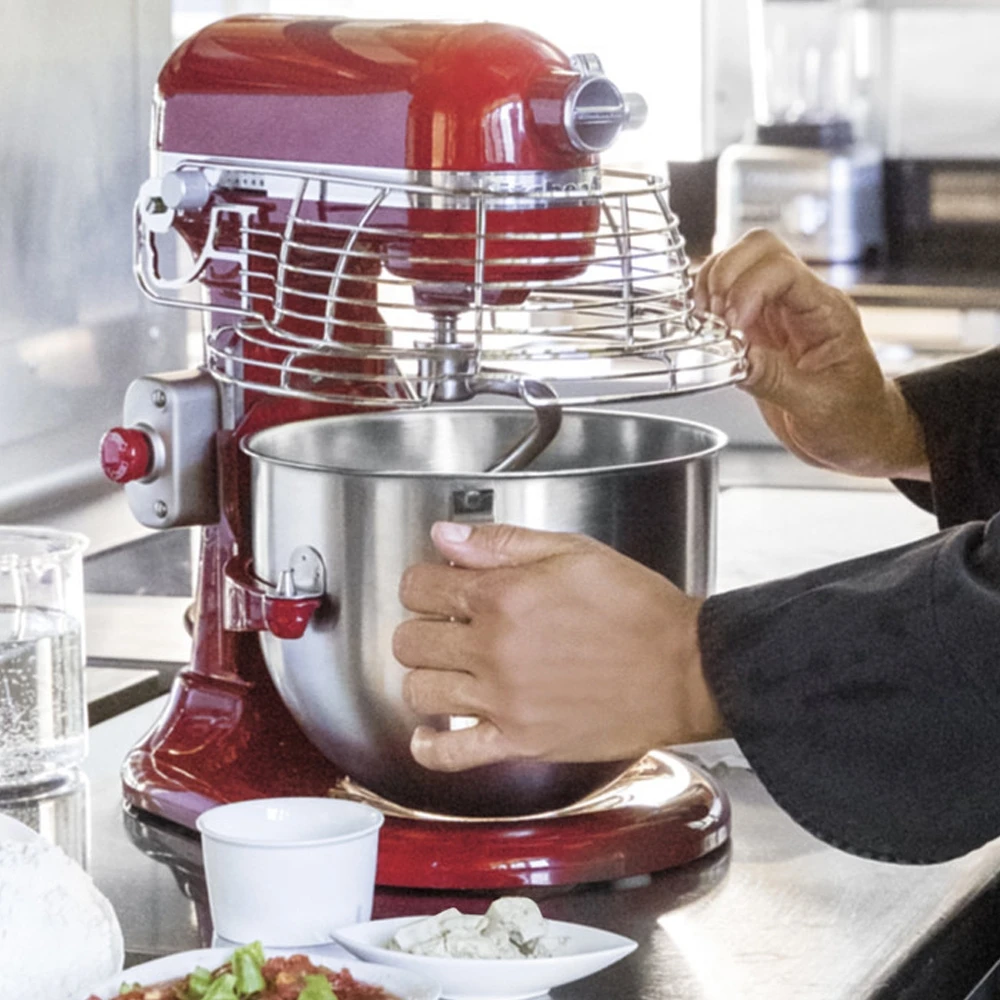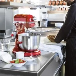 Der professionelle Standmixer mit 6,9 L – Schüsselheber, in den Farben Empire-Rot, Weiß und Silber Metallic erhältlich, zeichnet sich durch sein professionelles, abgerundetes Design aus. Der Hochleistungsmotor mit Direktantrieb arbeitet besonders leise, aber leistungsstark: die ideale Küchenmaschine, wenn Sie große Mengen verarbeiten müssen. Das robuste Ganzmetallgehäuse, das Präzisionsgetriebe aus Metall, der Kabelschutz und der Stopp-Schalter gewährleisten auch bei gewerblicher Nutzung Stabilität, Unempfindlichkeit, dauerhaften und sicheren Betrieb.