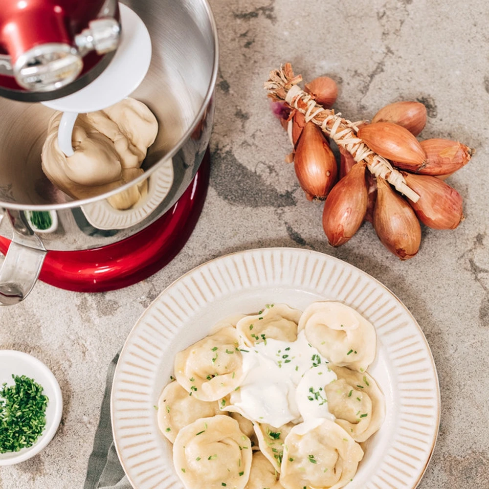 So ist die aktuelle Artisan-Küchenmaschine entstanden, ein Musterbeispiel an Leistungsfähigkeit und Langlebigkeit. Das einzigartige professionelle Design macht sie zu einer natürlichen Verlängerung Ihrer Hände, Ideen und Fertigkeiten. So können Sie sich in Ihrem Koch-Prozess entfalten und etwas wirklich Besonderes schaffen – immer und immer wieder. Das große Zubehörangebot verwandelt Ihre Artisan-Küchenmaschine in eine echte Küchenhilfe. Jedes Teil wird über die Zubehörnabe mit der Maschine verbunden und in wenigen Minuten ist die Maschine einsatzbereit um die weiteren Schritte zu erledigen. Mit dem Kitchenaid Zubehör zerkleinern Sie Fleisch, bereiten Pasta zu (Teig, Ausrollen und Schneiden!), vermengen kleine und große Mengen gleichermaßen – und all das, dank der Perfektion, die KitchenAid Ihnen mit der über 90 Jahre langen Erfahrung mit Küchenmaschinen bieten kann.