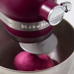 Zeitlose, vielseitige Küchenmaschine mit kippbarem Motorkopf in der Farbe des Jahres, einem satten Magenta, mit glänzender Oberfläche. Viel Spaß beim Experimentieren mit unserem Zubehör.