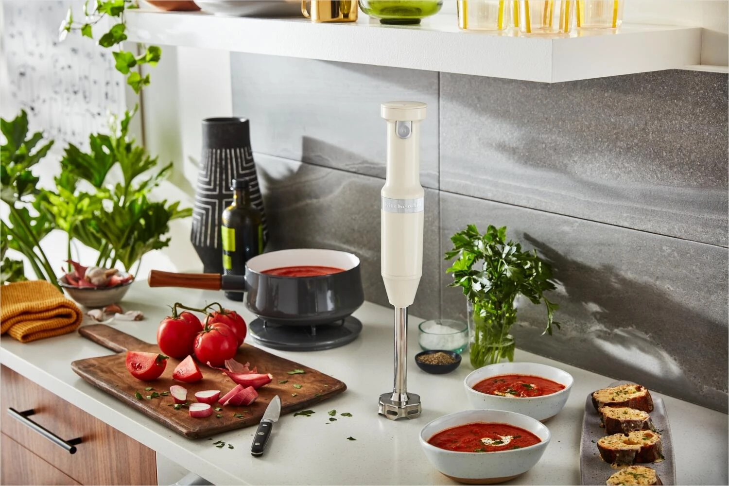 Ob Saucen, Suppen oder Smootihies: Mit dem kabellosen Stabmixer von