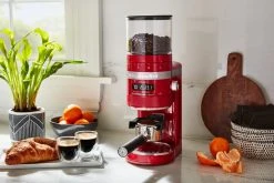 Kaffeemühle in empire rot. Mit Mahlkegel aus Edelstahl, 70 unterschiedlichen Mahleinstellungen und Dosiertechnologie. Einfach direkt in den Siebträger mahlen und frischen Espresso genießen.