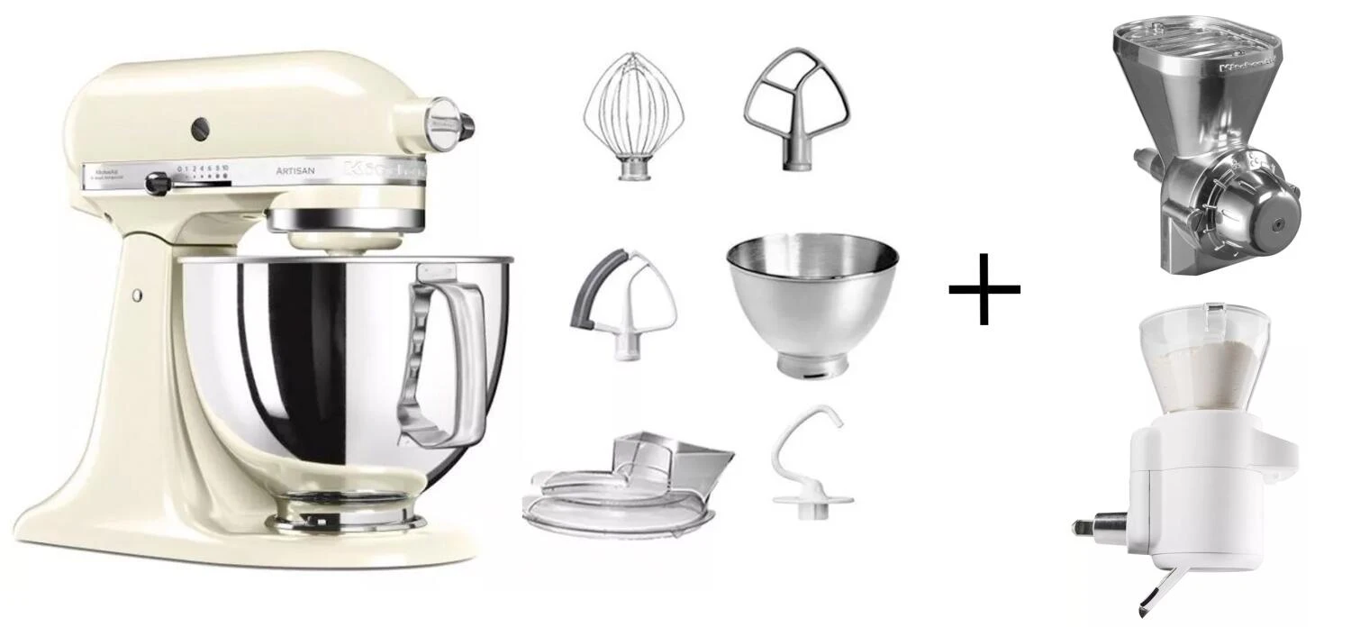 KitchenAid Küchenmaschine ARTISAN 175PS in creme Backprofi-Set mit Getreidemühle und Sieb mit digitaler Waage.