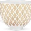Mit dem Original Planetrührwerk können Sie auch größere Mengen schnell und gründlich kneten, rühren und mischen. Während des Betriebs bewegt sich der Flachrührer in der fest stehenden Schüssel und dreht sich zugleich in die Gegenrichtung um seine eigene Achse. Die Küchenmaschine KitchenAid rührt schneller und gründlicher als die meisten anderen elektrischen Küchengeräte. Daher muss die Rührzeit bei den meisten Rezepten angepasst werden, um z. B. ein Ausflocken zu vermeiden. Schüssel und Flachrührer sind so konstruiert, dass sie ohne allzu häufiges Abkratzen ein gründliches Rühren gewährleisten.