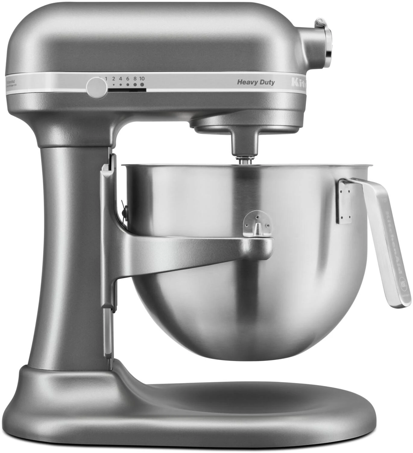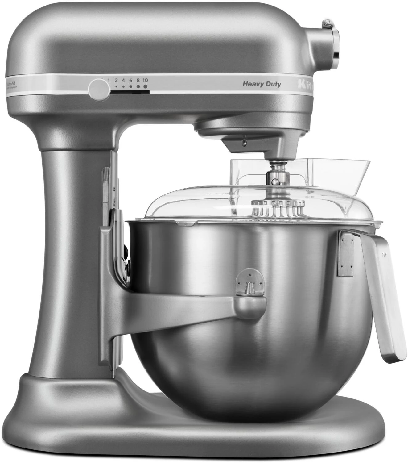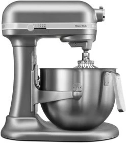 Küchenmaschine HEAVY DUTY in silber mit Schüsselheber und 6,9 L Edelstahlschüssel.