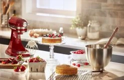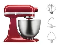 Die Mini-Küchenmaschine von KitchenAid ist 25 Prozent leichter und 20 Prozent kleiner als seine klassischen Vorgänger. Ausgestattet mit dem typischen Kippmotor, Edelstahl-Schüssel mit 3,3 Liter Füllmenge und 250 W Leistung per Gleichstrommotor mit Direktantrieb steht sie den klassischen Küchenmaschinen jedoch in Nichts nach.