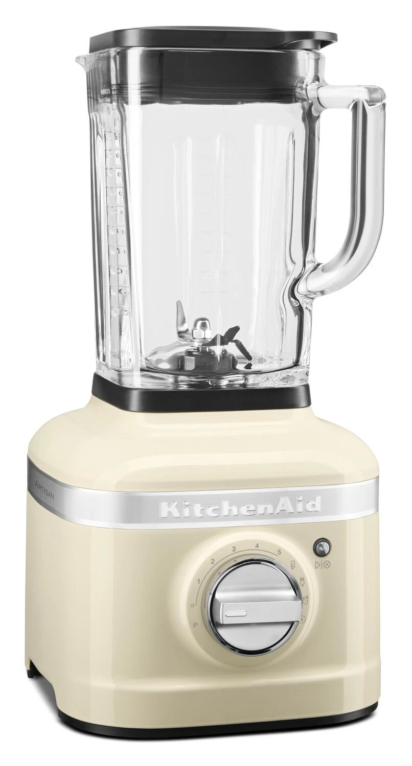 Standmixer Artisan K400 in creme. Hochwertiger Standmixer mit neuartigem 3-teiligem Mix-System, bestehend aus einem 1,5 PS starkem Motor, einer einzigartig asymmetrischen Klinge und einem 1,4 L Glas-Behälter mit Riffelungen und Skala.