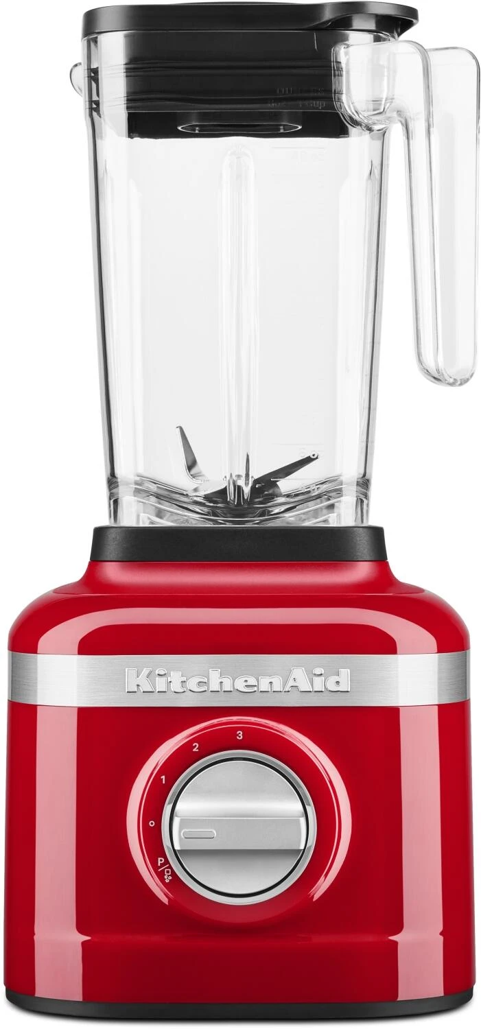 Standmixer K150 in empire rot. Hochwertiger Standmixer mit 3-teiligem Mix-System, bestehend aus einem 0,9 PS starkem Motor, einer einzigartig asymmetrischen Klinge und einem Behälter mit Skala.
